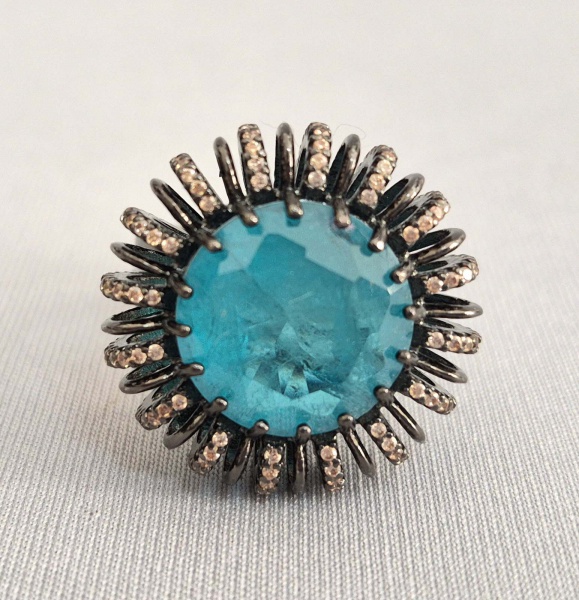 • Anel em metal banhado a Ródio negro e pedrarias. Aro 19/20