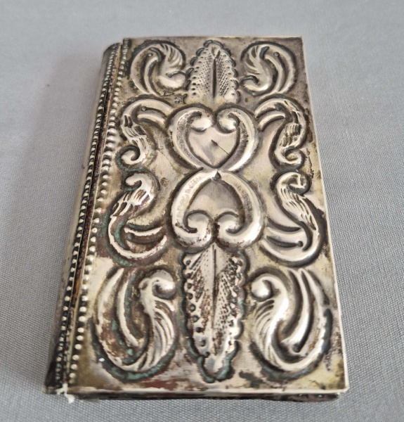 • Antigo missal peruano, datado de 1935 , com capa rvestida em Prata de lei 925 contratada. Med. 11 x 07 cm. No estado.