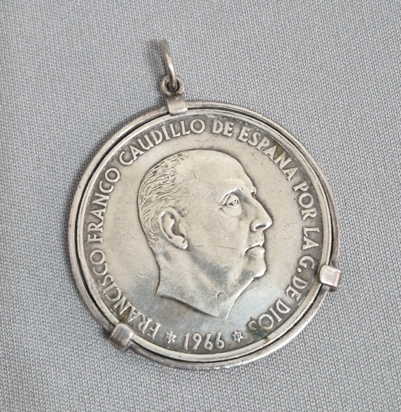• Pingente com moeda em Prata - 100 Pesetas, Espanha - Ano: 1966 - Caudillo Francisco Franco. Med. 5 x 4 cm. Peso liquido: 23 gramas. Em ótimo estado. Item de coleção. ------ https://www.moedaemetal.com.br/moeda-de-prata-de-100-pesetas-espanha-ano-1966-caudillo-francisco-franco?srsltid=AfmBOorIFtuwpwHiFNK5D99y4C1x8aO3gCgLLHnzStBlsxN8NNIdBNlI
