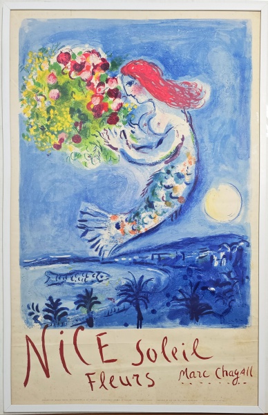 • MARC CHAGALL (1887-1985) - EX- COLEÇÃO MARIO BARATA (1921-2007) - "Nice, Soleil, Fleurs", 1961. Litografia da tiragem original, realizada pelo próprio artista a pedido do governo francês para a riviera Francesa 'COTE D'AZUR'. Edição do Atelier MOURLOT. Tiragem de 5.000 unidades. Med. 100 x 62 cm. Moldura nova. Total: 102 x 64.5 cm. Papel com algumas poucas marcas. REFERÊNCIA: National Museum Marc Chagall. VER NA CHRISTIES E OUTROS - https://www.christies.com/en/lot/lot-5802466  ----- https://musees-nationaux-alpesmaritimes.fr/chagall/en/agenda/evenement/nice-soleil-fleurs --- https://londonoriginalprintfair.com/artworks/14158-marc-chagall-nice-soleil-fleurs-1962/ ---- https://www.rogallery.com/artists/marc-chagall/nice-soleil-fleurs-la-baie-des-anges/ --- https://artgallery.yale.edu/collections/objects/33670 ----https://www.lyonandturnbull.com/auctions/travel-and-vintage-posters-720/lot/30?srsltid=AfmBOoqJFLbdUDeO5W-tFZqX22cCAg-8C1tDetN12ghTsIcKJ6BhF3uy