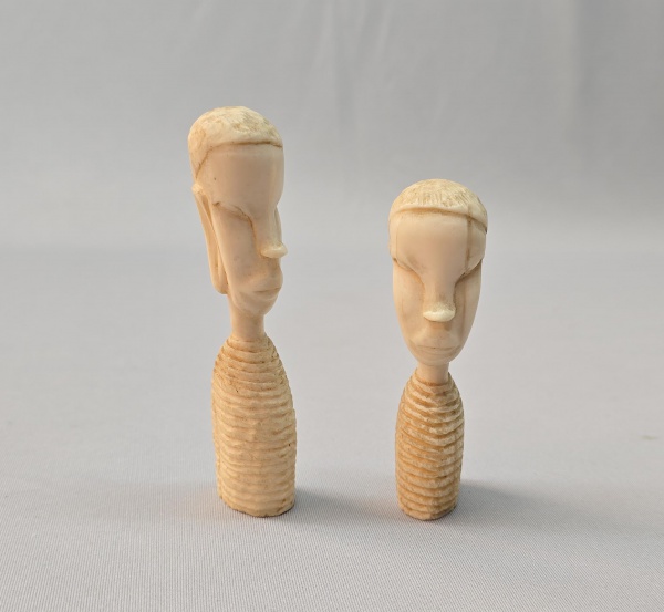 • Dois pequenos bustos em marfim africano. Med. 10 cm. Fios de cabelo do tempo.