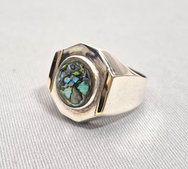 • Anel em prata com detalhes em Ouro e placa em Abalone polido. Aro19/20