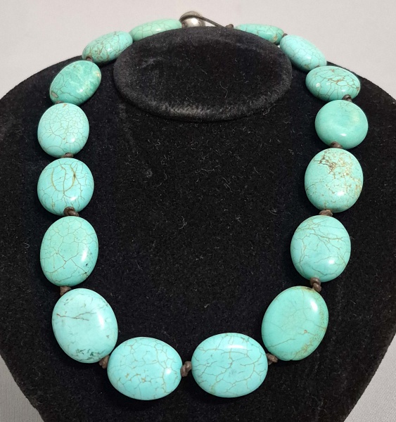 • Colar com contas contas grande em Turquesa polida. Med. 46 cm