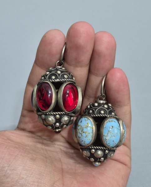 • Dois grandes pingentes em Alpaca e pedras. Med.