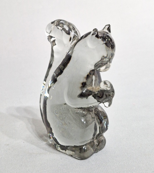 • Escultura de esquilo em cristal de murano fumê. Algumas falhas. Med. 11 x 06 cm