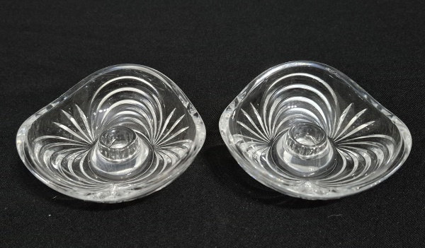 • Par de pequenos castiçais em cristal para uma vela. Med. 8 x 8 cm.