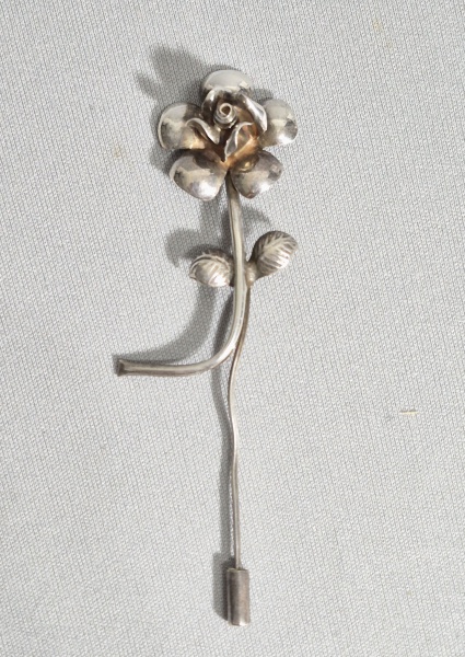 • Antigo alfinete em Prata no formato de rosa. Med. 8 cm