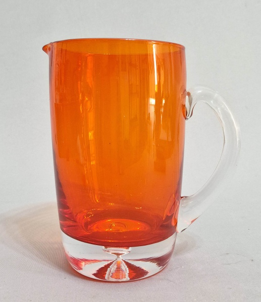 • Anos 60 - Elegante jarra em cristal sommerso na cor laranja. Base alta decorada com bolha no interior. Med.