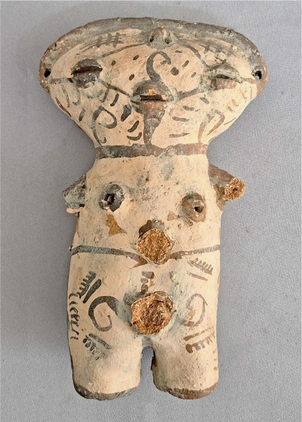 • Escultura de figura feminina Pré Colombiana, possivelmente Cuchimilco, da cultura Chancay que se desenvolveu na costa central do Peru. Perdas. Medida 19x12 cm