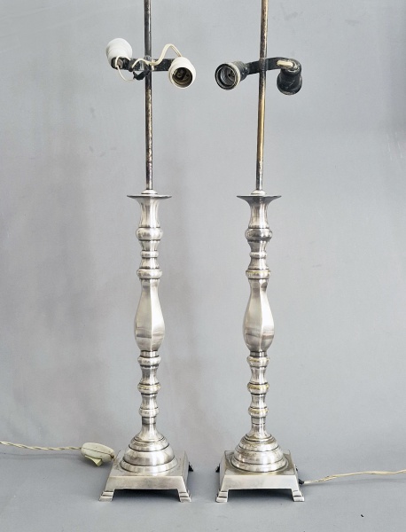 • Par de luminárias a partir de antigos castiçais em metal. Med.