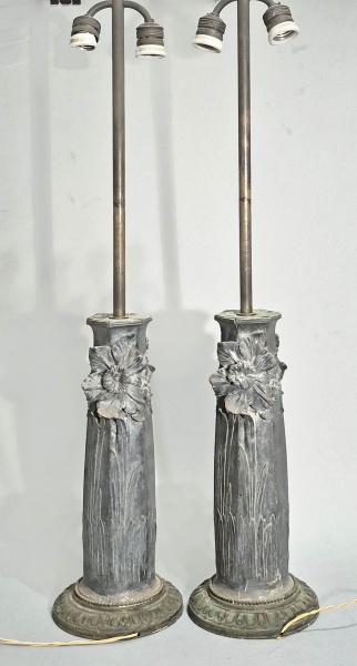 • Par de luminarias em metal no estilo Art Nouveau. Med.