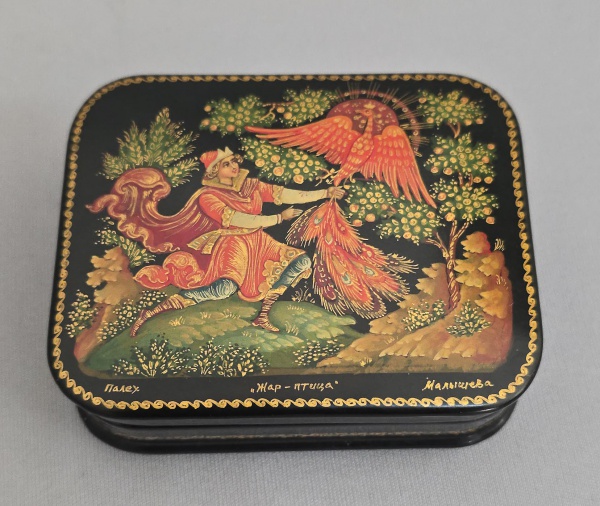 • Antiga caixinha russa em charão, pintada a mão. Med. 7.5 x 6 x 3 cm  ---- https://www.themoscowtimes.com/2019/12/31/miniature-miracles-russian-painted-lacquer-boxes-a68714  ---- https://cherrycache.org/2020/08/23/the-legendary-art-of-the-russian-lacquer-miniature/