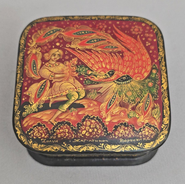 • Antiga caixinha russa em charão, pintada a mão. Med. 7 x 7 x 3 cm ---- https://www.themoscowtimes.com/2019/12/31/miniature-miracles-russian-painted-lacquer-boxes-a68714  ---- https://cherrycache.org/2020/08/23/the-legendary-art-of-the-russian-lacquer-miniature/