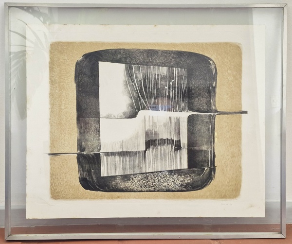 • Caixa de joias esculpida em pedra negra com tampa decorada com imagem do Taj Marral em delicado trabalho cravejado em Madrepérola. Med. 9 x 7 x 5 cm